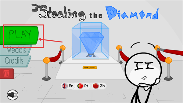 1、看到【Stealing-the-Diamond】界面,点击【PLAY】可进入以【Diamond-Diamond】为目标的游戏。