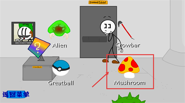 3、看到可交互物品含【Alien】-【Greatball】-【Crowbar】-【Mushroom】,各物品功能不同,需结合当前门的场景选适配物品解锁路径。