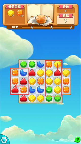 1、以蛋糕工坊为核心题材创新演绎传统三消玩法,消除同步收集蛋糕原材料,限定步数内完成制作任务,将休闲娱乐与目标挑战巧妙结合。