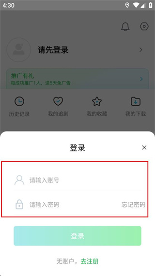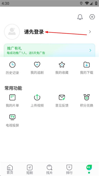 3、在个人页面中,找到请先登录选项,点击该选项后弹出对应的登录窗口。