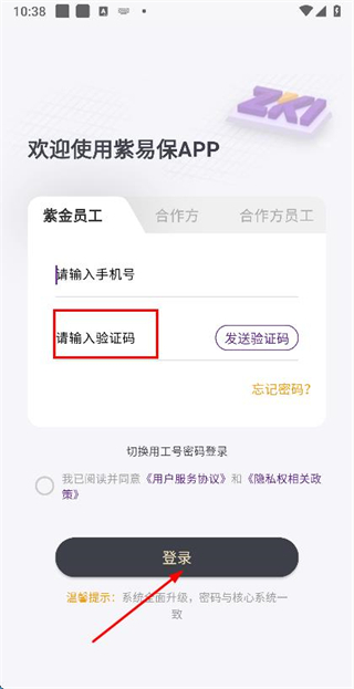 2、在登录页面填写手机号,勾选协议后,点击发送验证码。