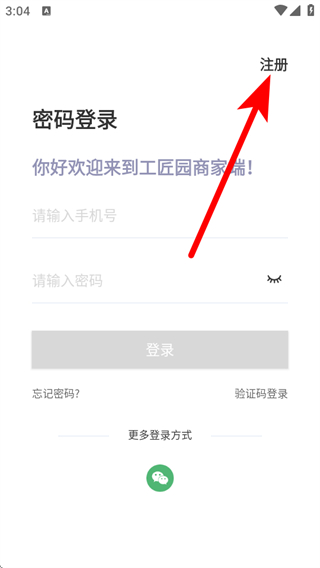 1、打开亿慧工匠园,在密码登录页点击右上角注册,进入账号注册填写界面。