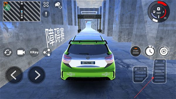 2、进入关卡后,通过左侧的左右箭头按钮,控制车辆在赛道范围内进行左右方向的移动调整。
