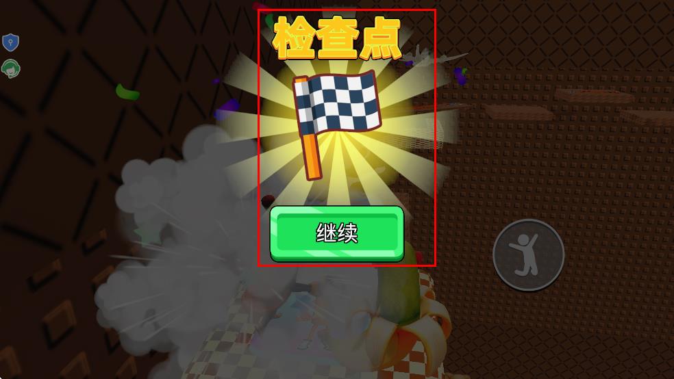 4、到达检查点后,点击绿色的继续按钮,推进关卡流程进入后续挑战环节。