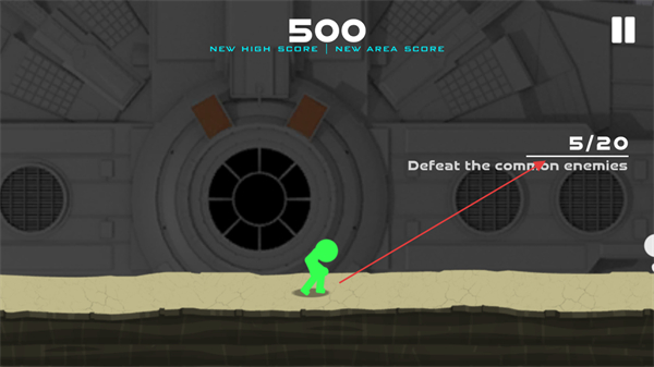 2、完成部分敌人击败任务5/20,积累分数至500,继续向击败20个敌人的目标推进。