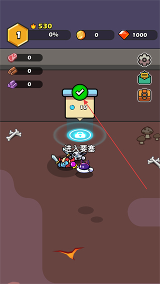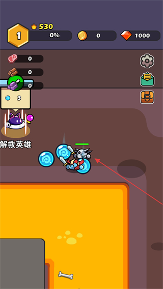 1、操控史莱姆移动,完成解救英雄的目标,推进关卡流程。