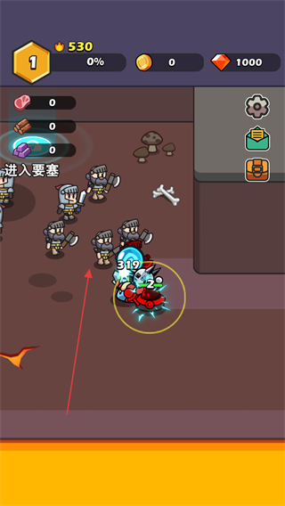 2、继续移动史莱姆,向敌方区域推进,达成进入要塞的阶段目标。