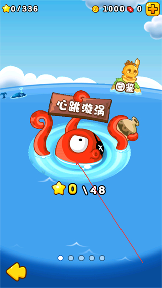 1、进入心跳漩涡关卡,需收集48颗星星,操控蔬菜角色在水域场景中移动,准备迎击敌人。
