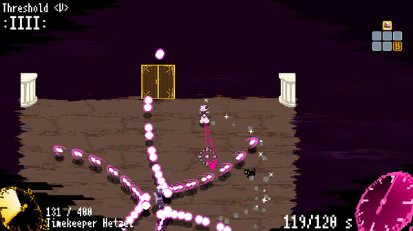 《时间掠夺者亨迪》的内容和时间静止有关,在这里要努力对抗各种弹幕,暂停时间以躲避子弹,收集物品以增强实力,各种敌人都有独特的弹幕,想要躲避这些玩意还是比好困难的。