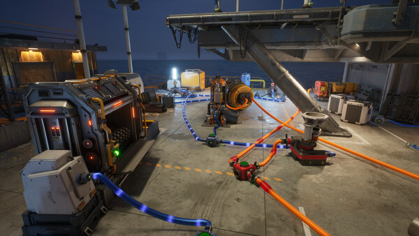 工业废土风格的美术设计搭配低沉环境音效,海浪拍打金属船体的回响与机械运转的嗡鸣交织成独特的末日交响曲。当成功发射载人舱时,银幕般的星空投影与渐强的交响乐将带来震撼人心的情感冲击。