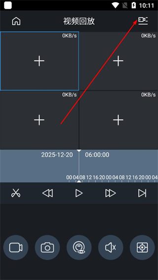 2、进入视频回放页面后,点击右上角的设备选择图标,进入设备列表界面。