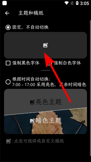 2、在设置页面,点击主题和稿纸选项,进入对应设置界面。