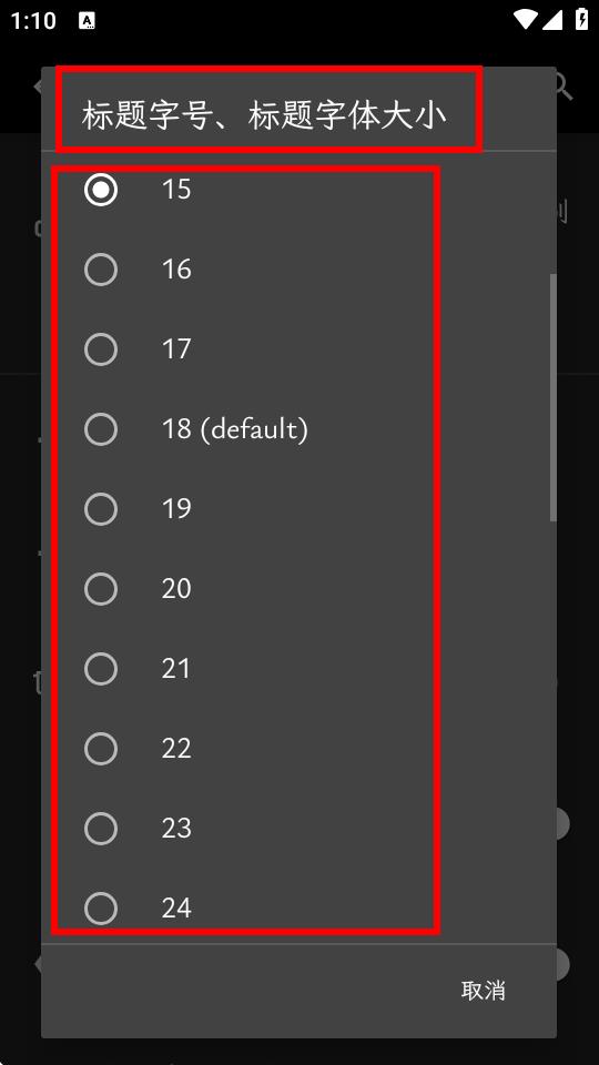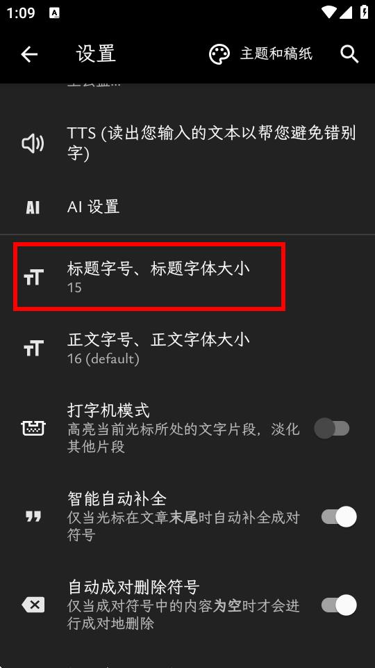 3、进入设置界面后,找到标题字号、标题字体大小或正文字号、正文字体大小选项并点击。