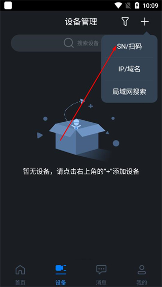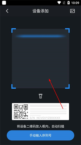 4、在设备添加页面,将设备二维码放入扫描框自动识别,完成设备添加。