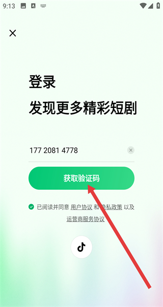 3、在登录界面,输入手机号后,点击“获取验证码”按钮,获取登录所需的验证码。