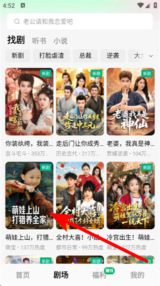 2、在剧场页面,点击选择喜欢的短剧,进入播放页面。