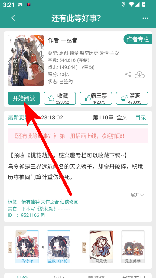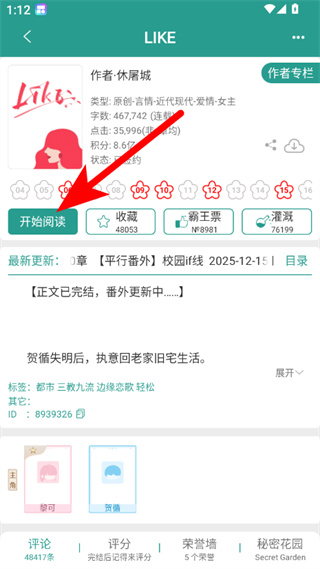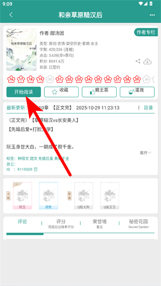 1、在晋江小说阅读APP书城页面,点击想要阅读的小说,进入小说详情页面。