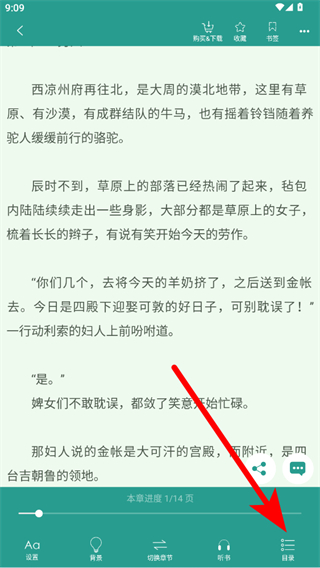 3、在小说阅读页面,点击右下角目录选项,进入章节目录界面。