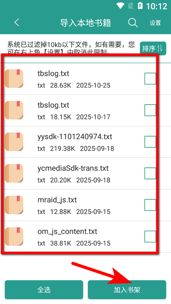 4、选择要导入的txt文件后点击加入书架,完成晋江小说阅读txt小说库导入操作。