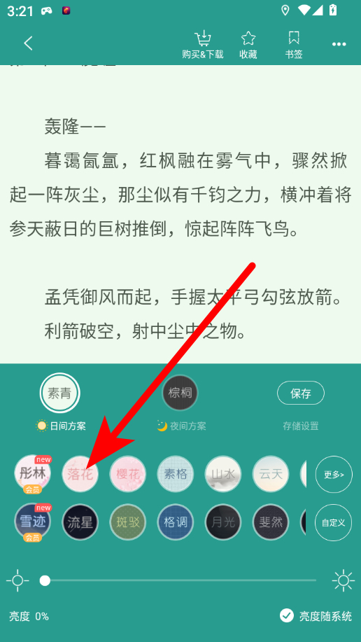 4、在背景设置界面,选择喜欢的背景图样式,如落花等,即可完成背景图设置。