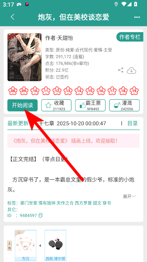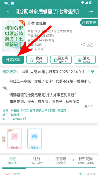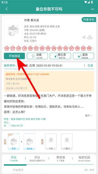 2、在小说详情界面,点击开始阅读按钮,进入小说阅读页面。