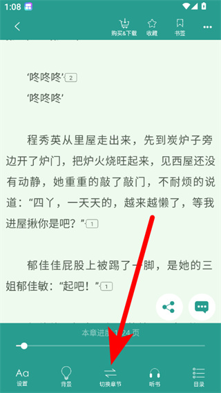 4、在章节选择栏中,拖动滑块或点击箭头即可切换到对应章节。