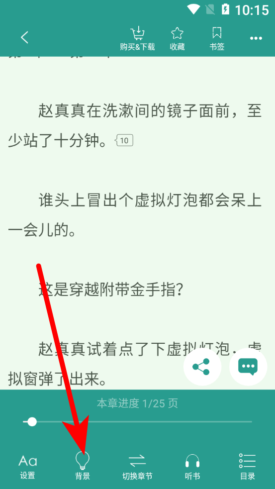 3、在小说阅读页面,点击下方背景选项,进入背景设置界面。