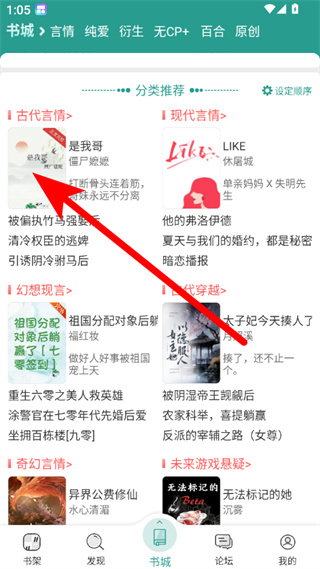 1、在晋江书城页面,选择要阅读的书籍,点击进入详情页。