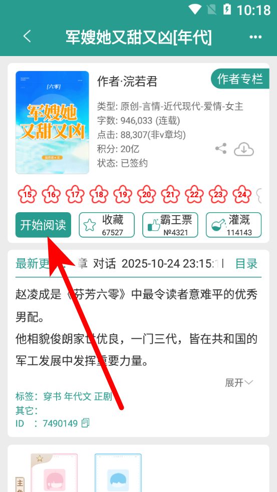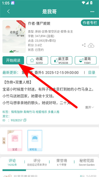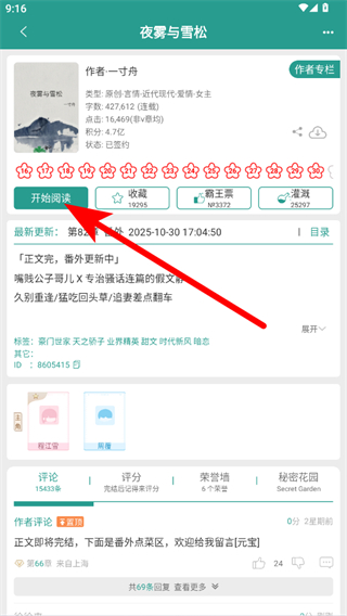 2、在小说详情界面,点击开始阅读按钮,进入小说阅读页面。