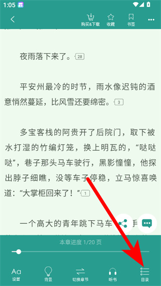 3、在阅读界面,点击右下角目录选项,进入章节目录页面。