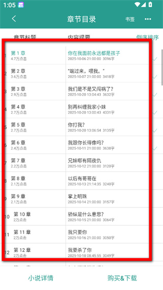 4、在章节目录页面,即可查看该书籍各章节的列表内容。