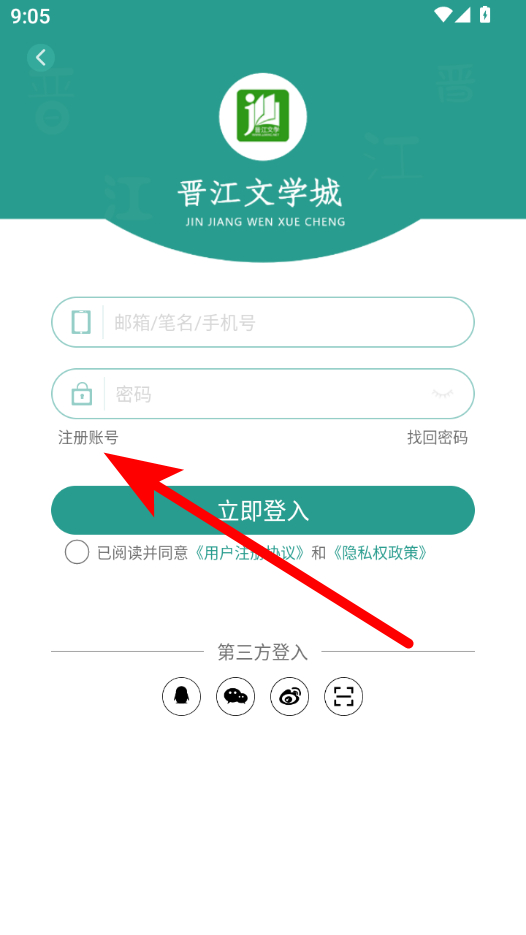 3、在账号登入页面,点击注册账号选项,进入注册界面。