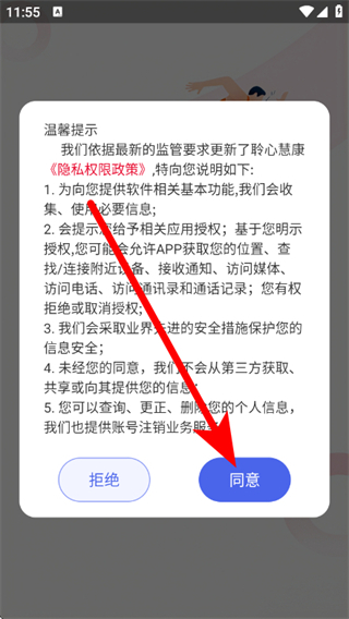1、在温馨提示弹窗中,点击同意,进入账号登录页面。