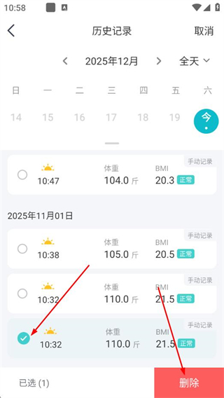 【优化】历史体重记录增加升降提示及年视图,体重变化更清晰