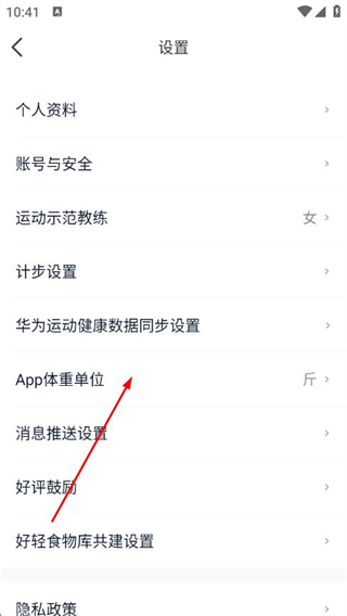 3、在设置页面点击App体重单位。