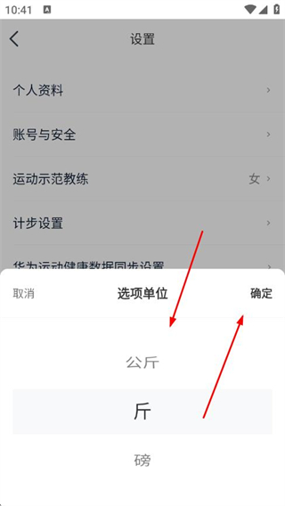 4、选择需要的体重单位,点击确定,即可完成体重单位修改。