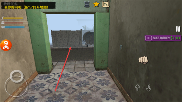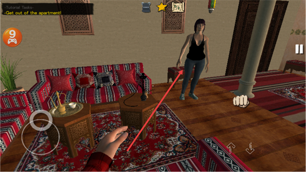 1、按Get out of the apartment!提示,操控角色离开公寓房间。
