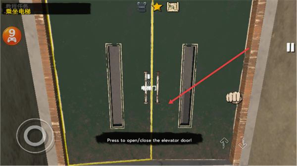 2、按Press to open/close the elevator door提示,操作开启电梯门,完成乘坐电梯任务。