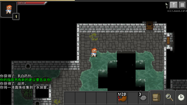 2、操控角色移动,拾取下水湿鞋道具,推进地牢探索。