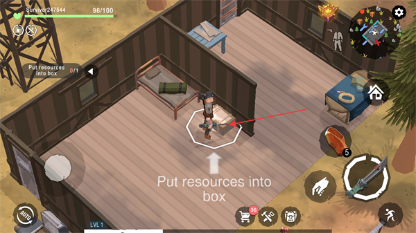 3、按提示Putresourcesintobox,收集资源,准备放入箱子。