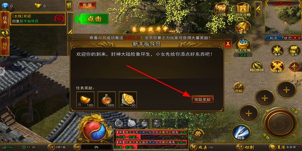 2、在新手引导界面中,点击领取奖励按钮,获取初始物资,助力角色前期的发展与探索。