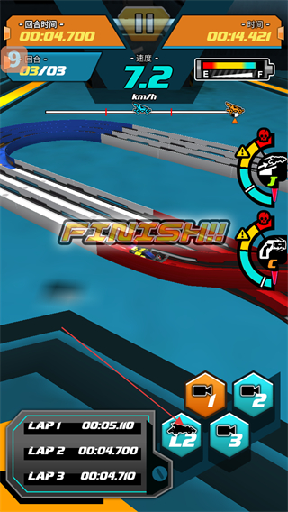 3、进入比赛界面后,点击界面中的橙色按钮,即可启动四驱车比赛,开启当前回合的竞速流程。