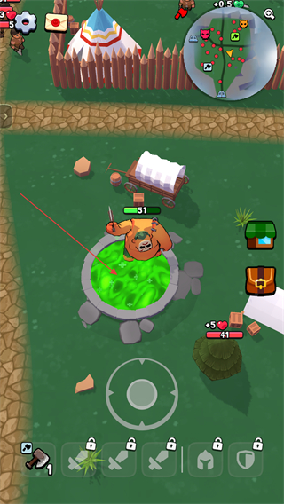 1、操控屠夫沿路径前进,击碎障碍门,收集道具,积累属性,推进至目标区域。