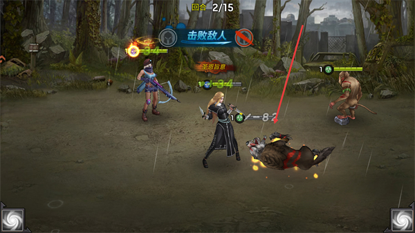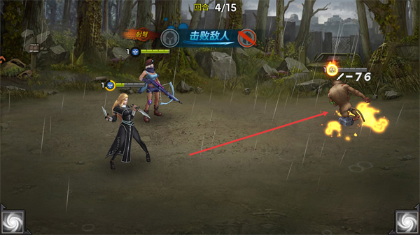 3、持续攻击剩余敌人如人形怪物,在回合4完成击杀,达成击败敌人目标。
