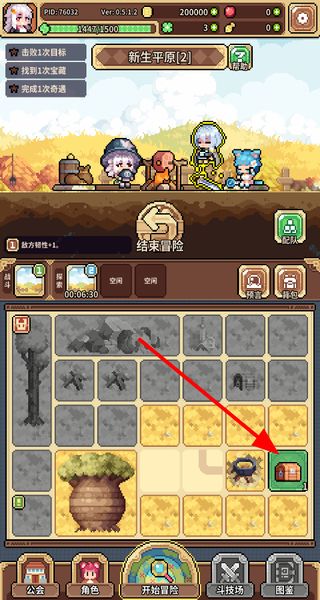 2、进入冒险场景后,滑动点击场景中的目标宝箱,触发对应的冒险事件,推进冒险进程,完成场景内的任务。