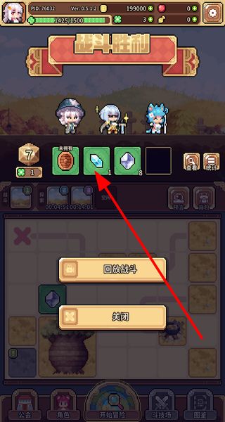 4、战斗胜利后可获得各类资源奖励,查看奖励内容后点击关闭按钮,结束战斗界面回到冒险场景。