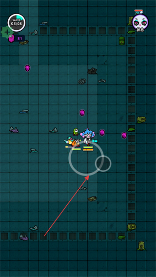 4、回到战场,继续通过移动+自动攻击的方式,应对更多敌方单位,推进生存进度。