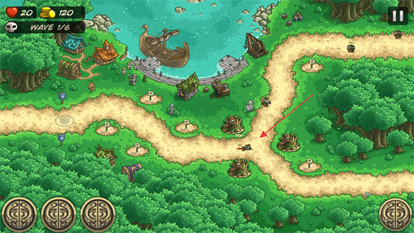 2、观察敌方路径,在关键位置布置防御塔如树木造型的炮塔,拦截敌人。