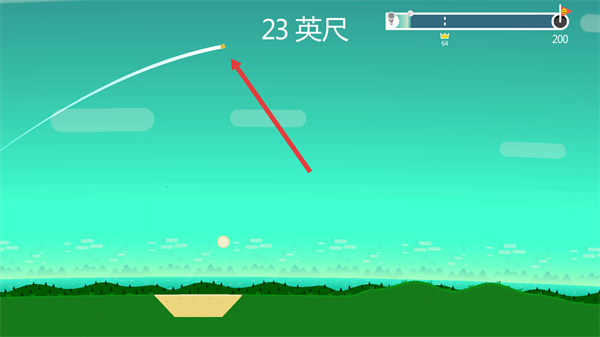 3、击球后球飞行至新位置,当前显示距离为23英尺,需持续击球积累距离,逐步接近200英尺的通关要求。