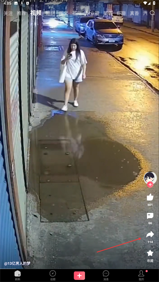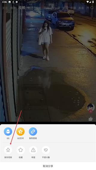 2、在下方弹出的菜单栏中,点击保存视频的按钮。